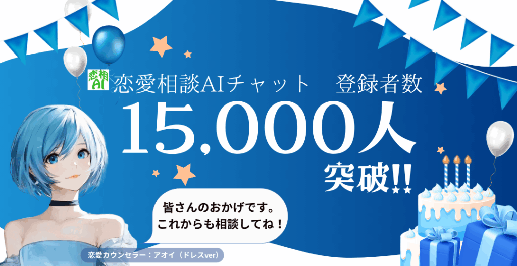 皆さまのおかげで、恋愛相談AIチャットのお友達が15,000人を超えました!